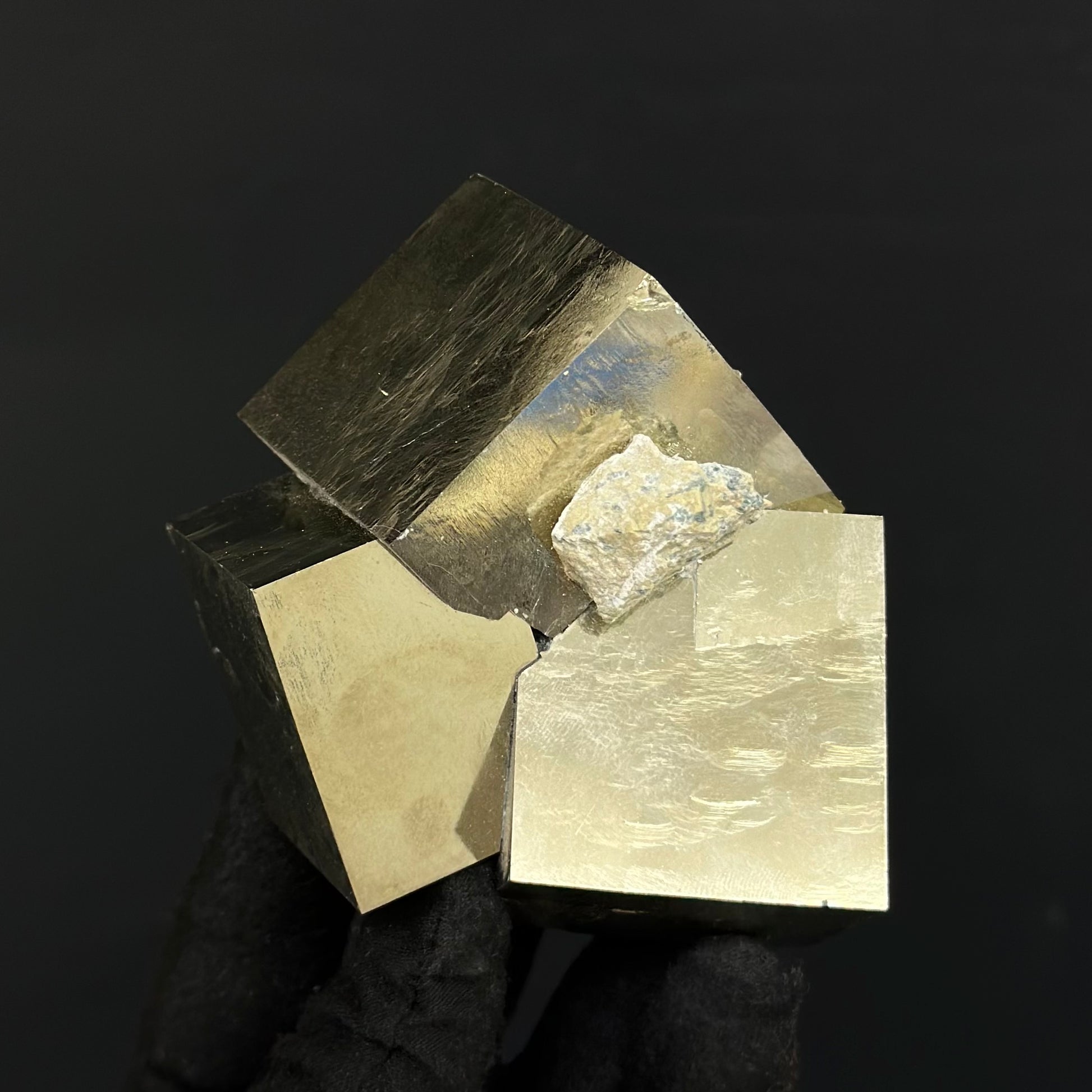 Incredible 2-inch wide cluster of natural, lustrous pyrite cubes with small lime stones connect.