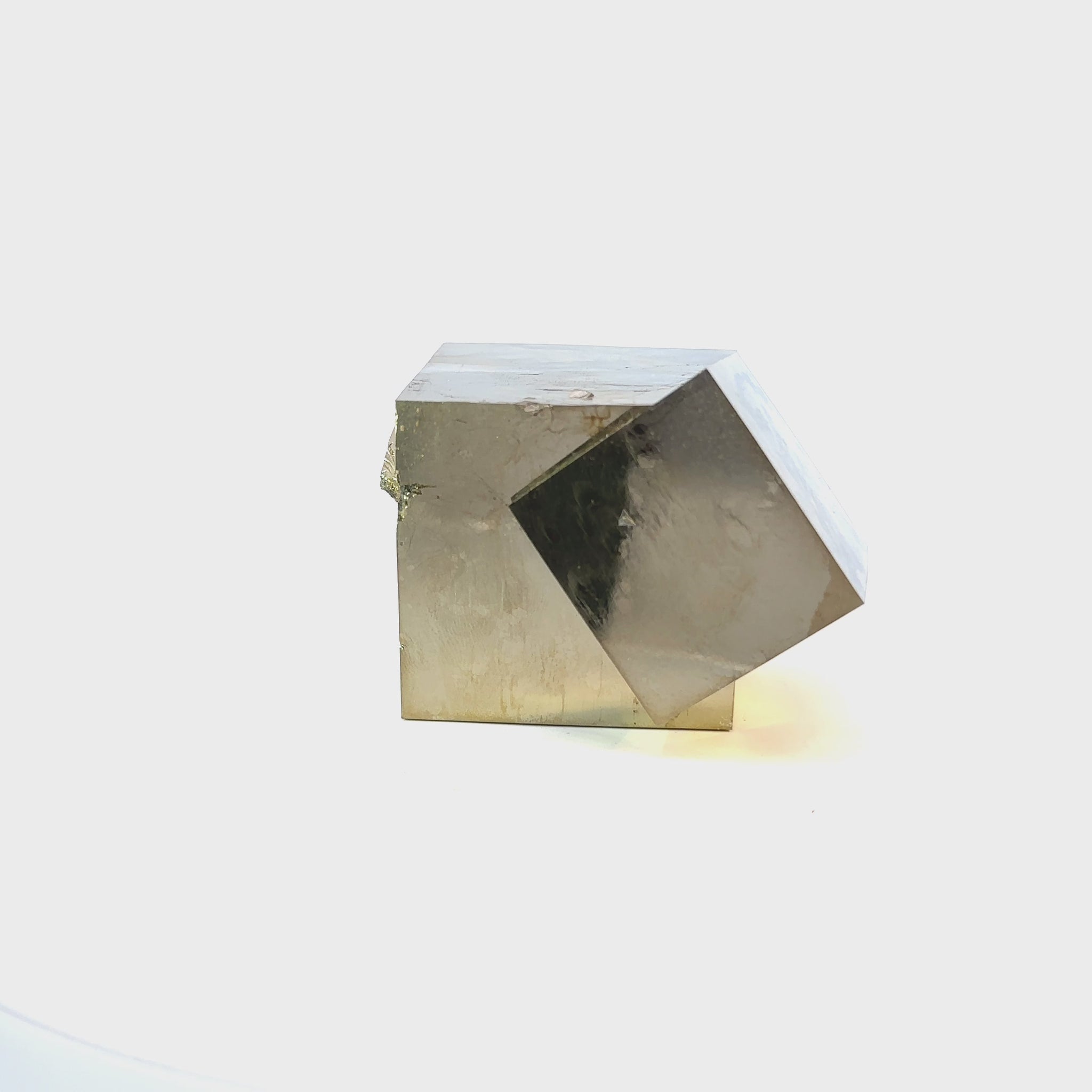 Pyrite specimen features 3 intergrown crystal cubes, naturally connected in a fascinating intertwining pattern.