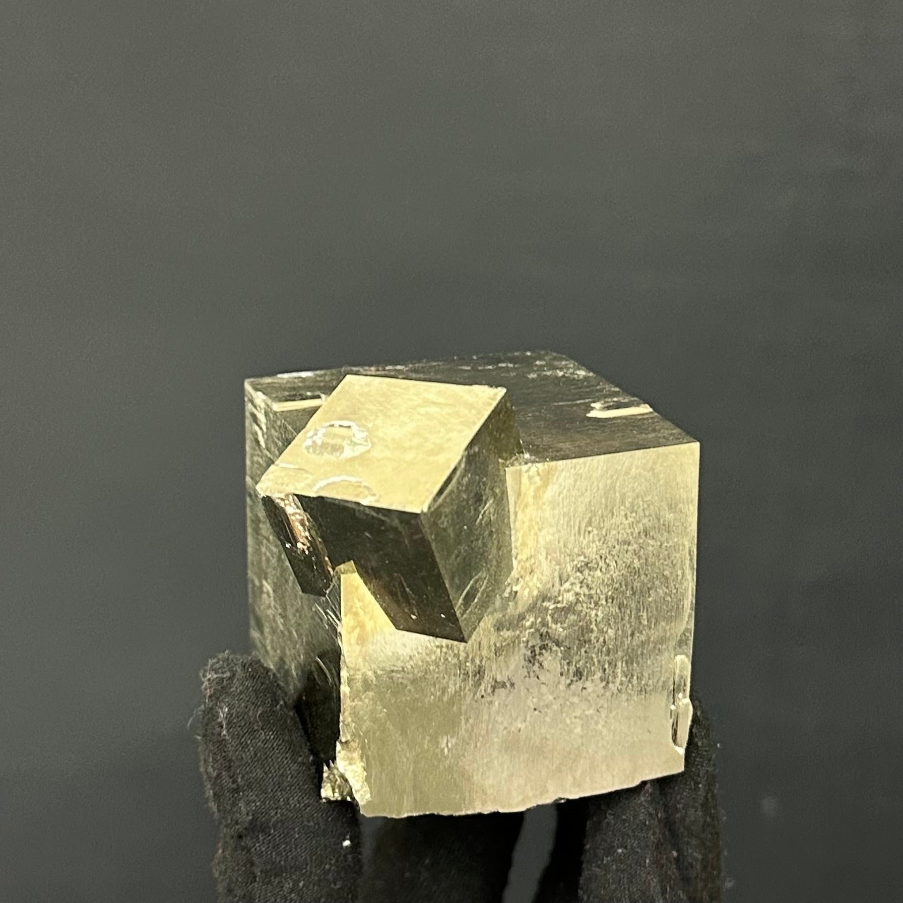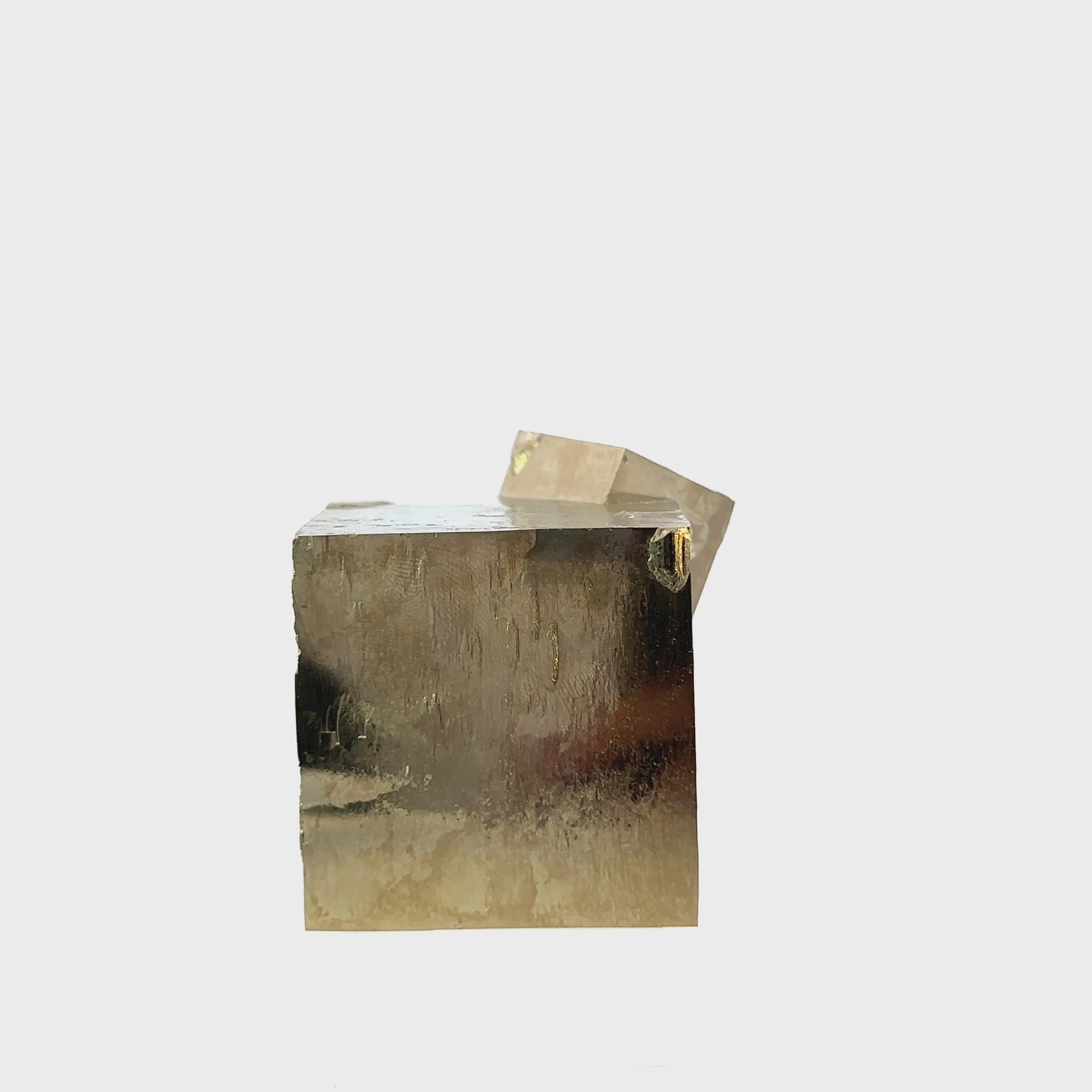 Pyrite specimen features 2 intergrown crystal cubes, naturally connected in a fascinating intertwining pattern.