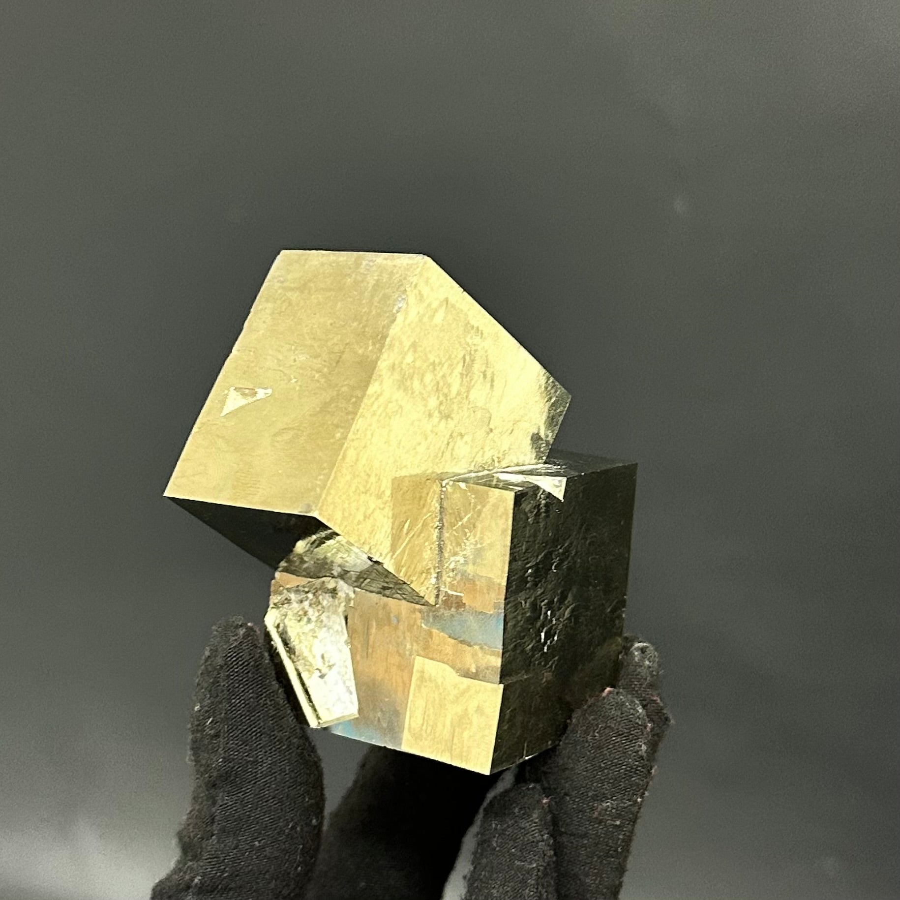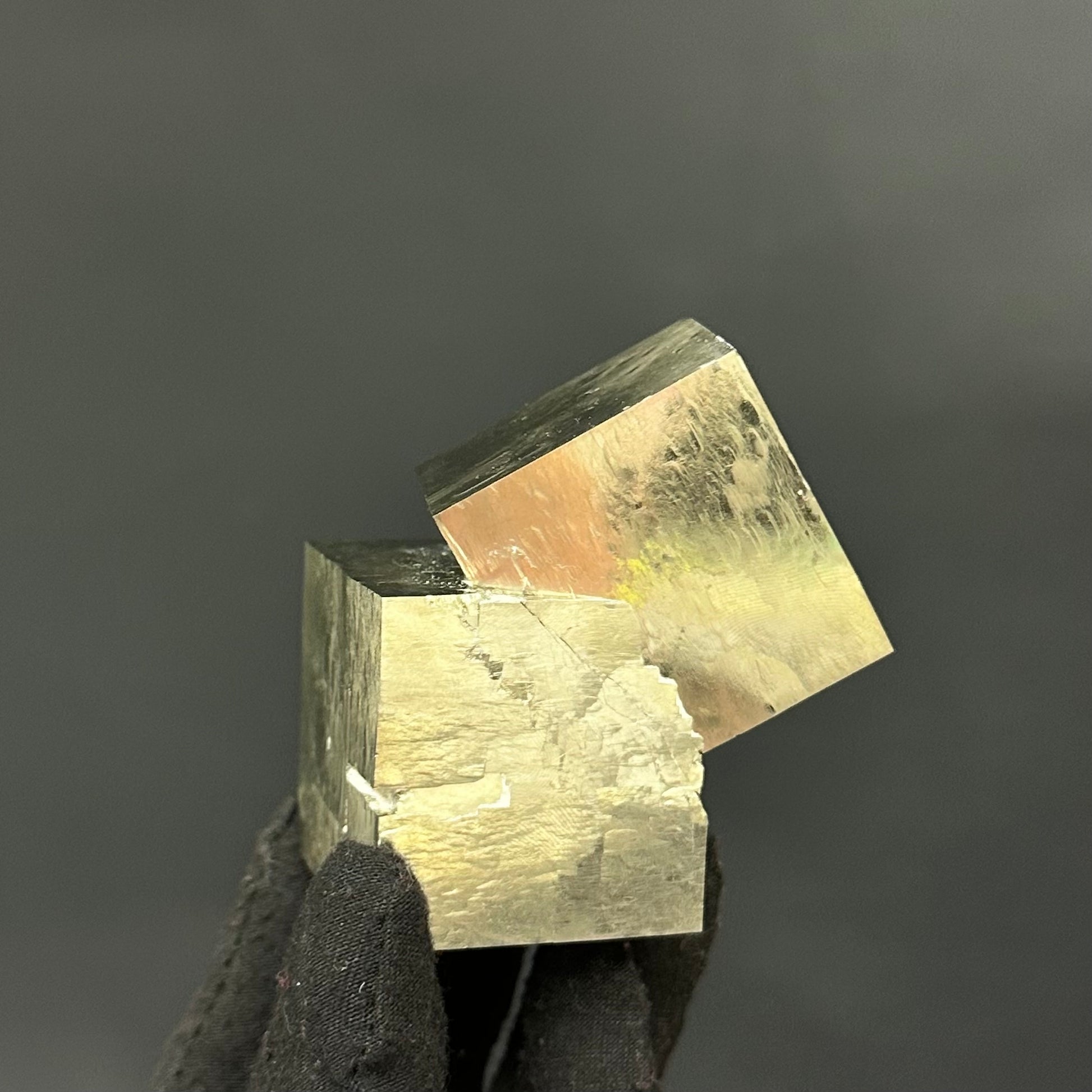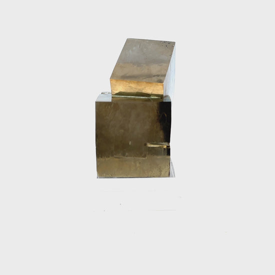 Pyrite specimen features 2 intergrown crystal cubes, naturally connected in a fascinating intertwining pattern.