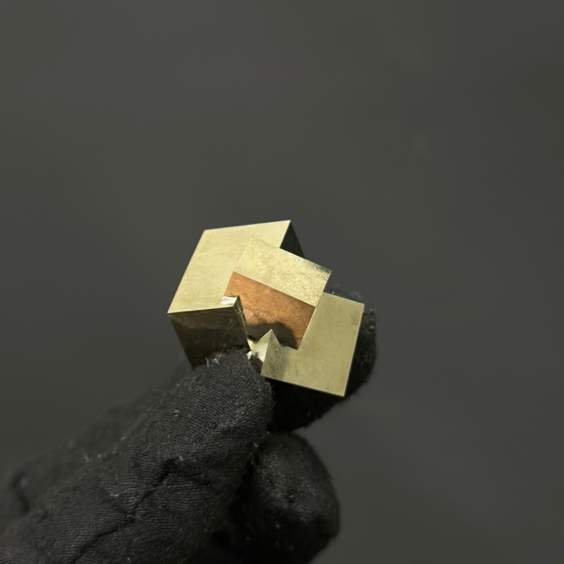 This unique pyrite specimen features 3 intergrown crystal cubes, naturally connected in a fascinating intertwining pattern. The high-quality mineral boasts a flawless surface and a brilliant golden shine. It is a treasure for any collector and would make an incredible, eye-catching gift.