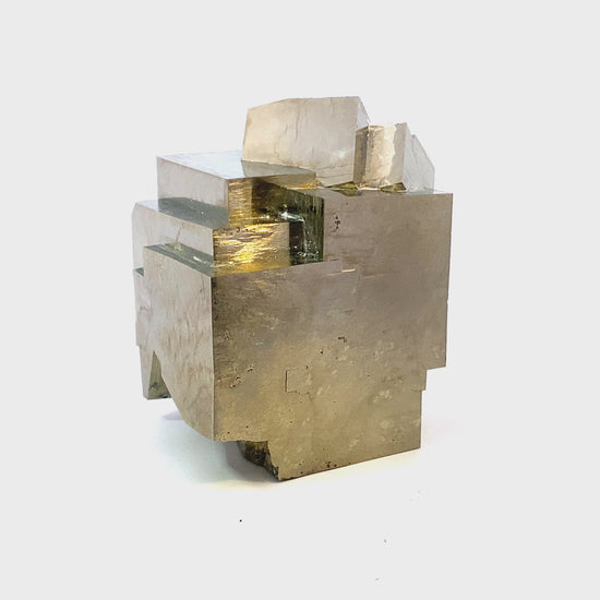 Interesting intergrown formation, the ladder-shaped cubes give a very special touch to this piece. Naturally connected in a fascinating intertwining pattern.