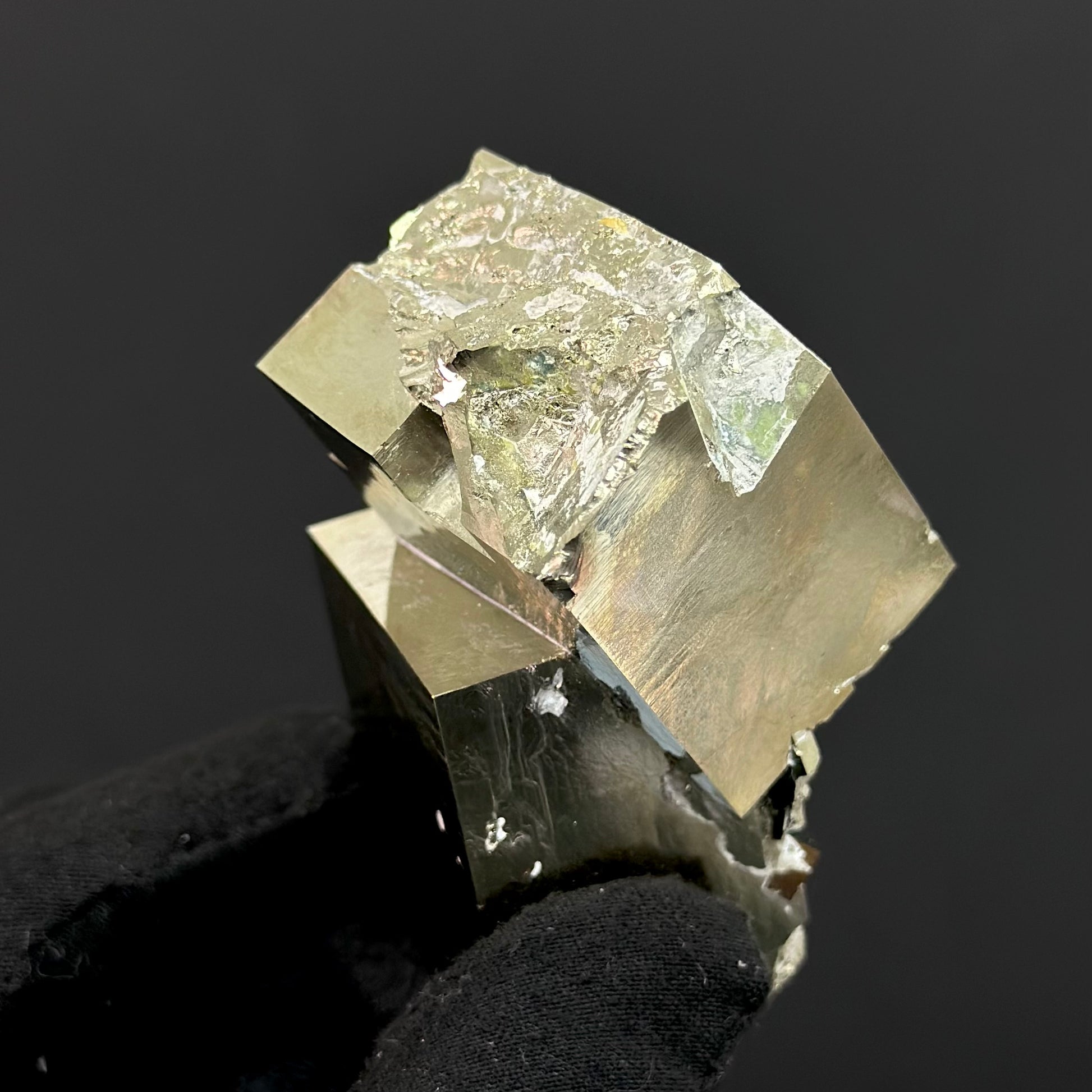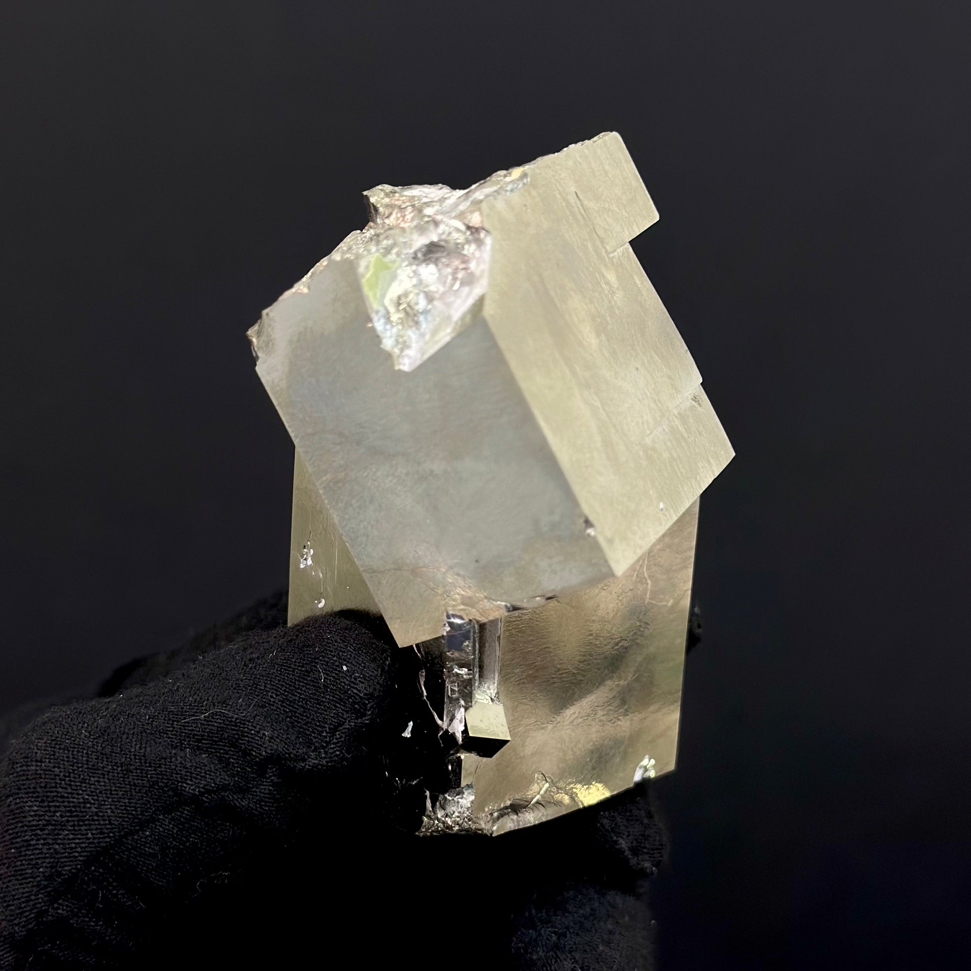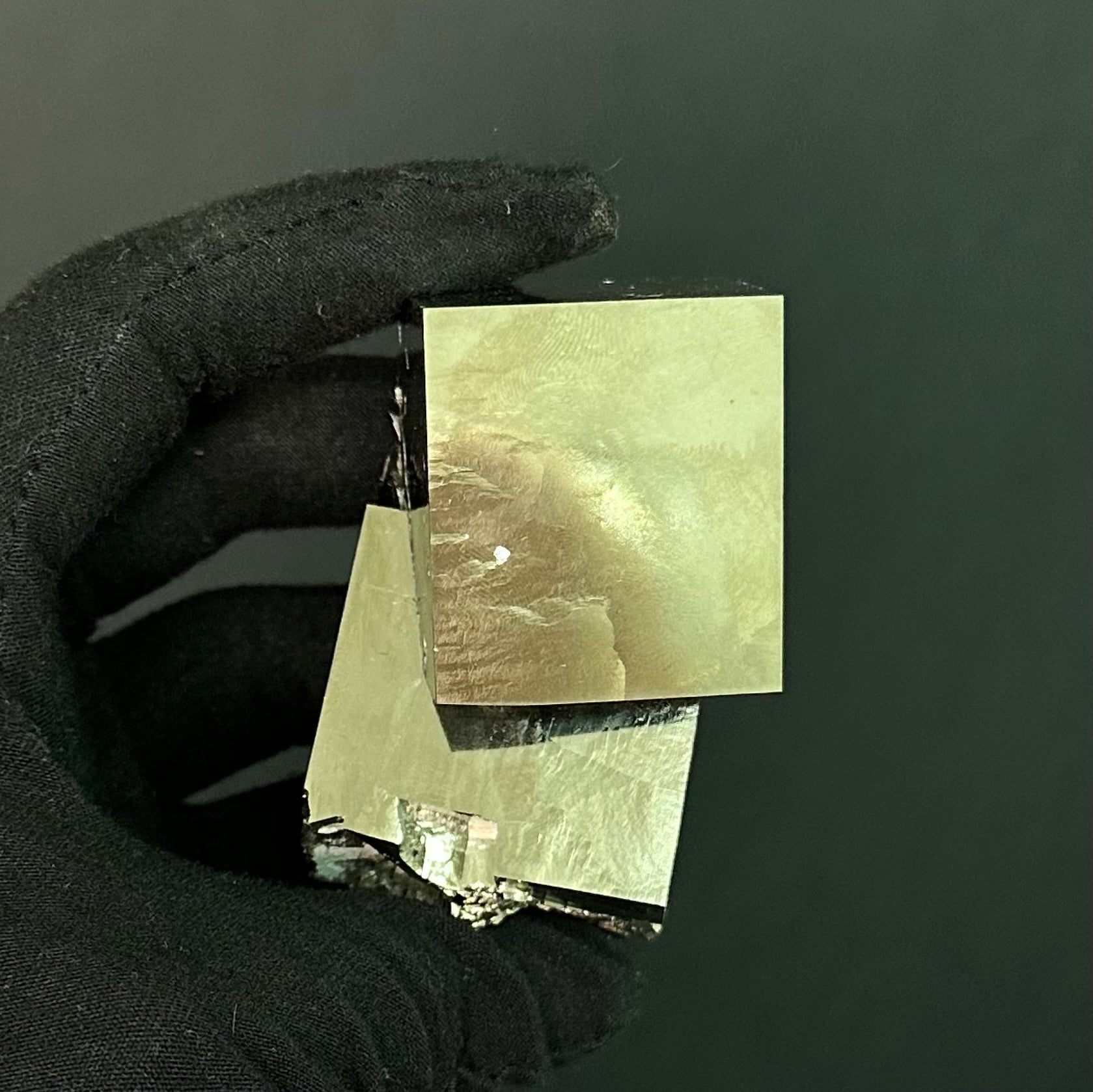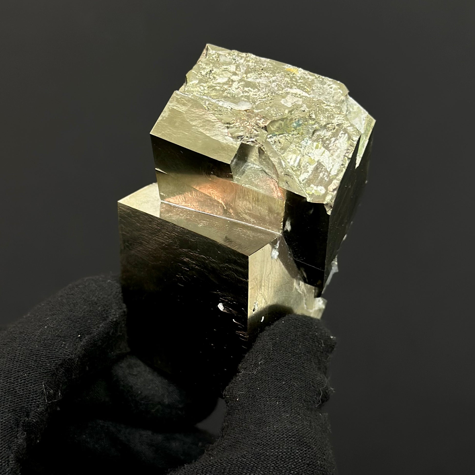 Pyrite specimen features 3 intergrown crystal cubes, naturally connected in a fascinating intertwining pattern.