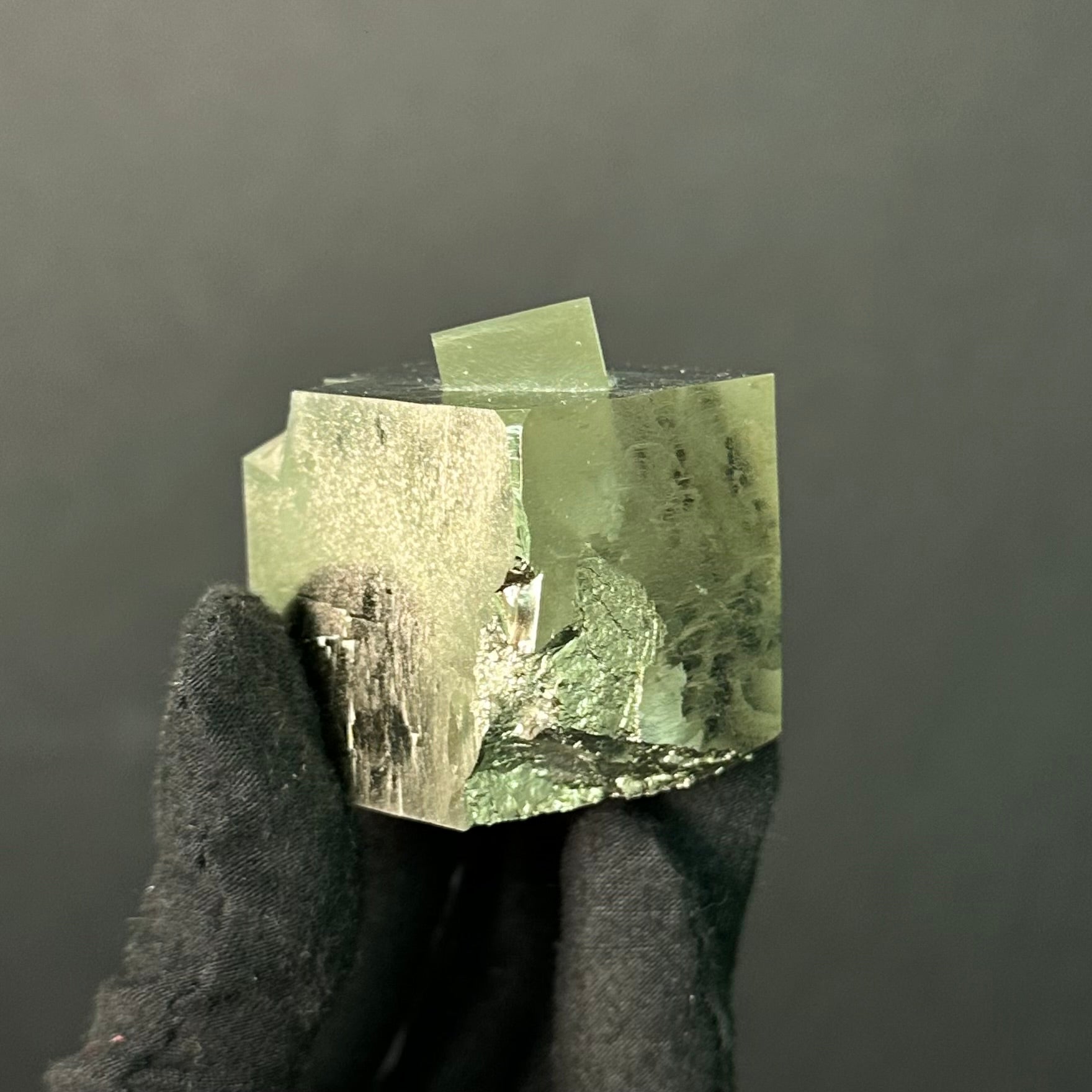 Pyrite specimen features 2 intergrown crystal cubes, naturally connected in a fascinating intertwining pattern.
