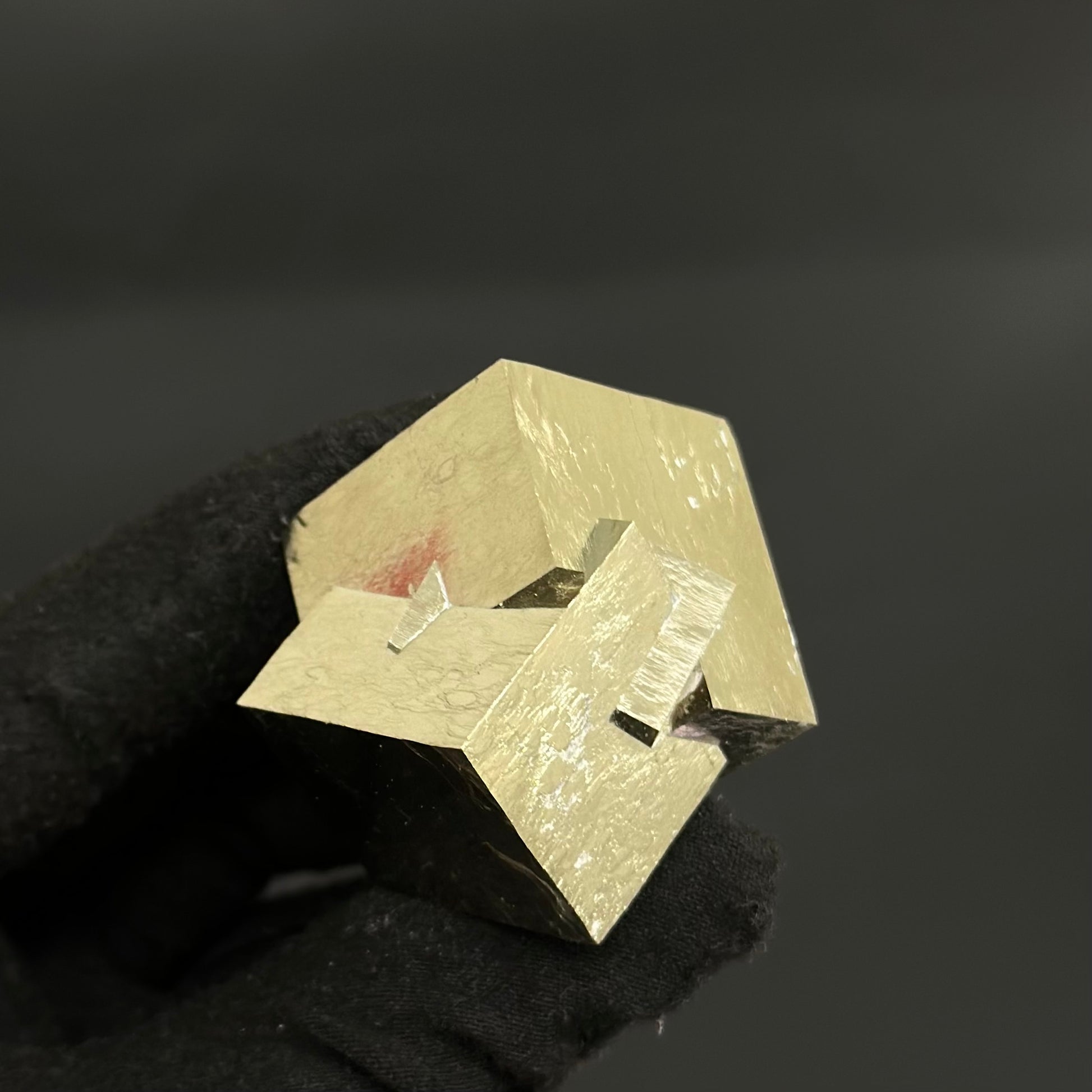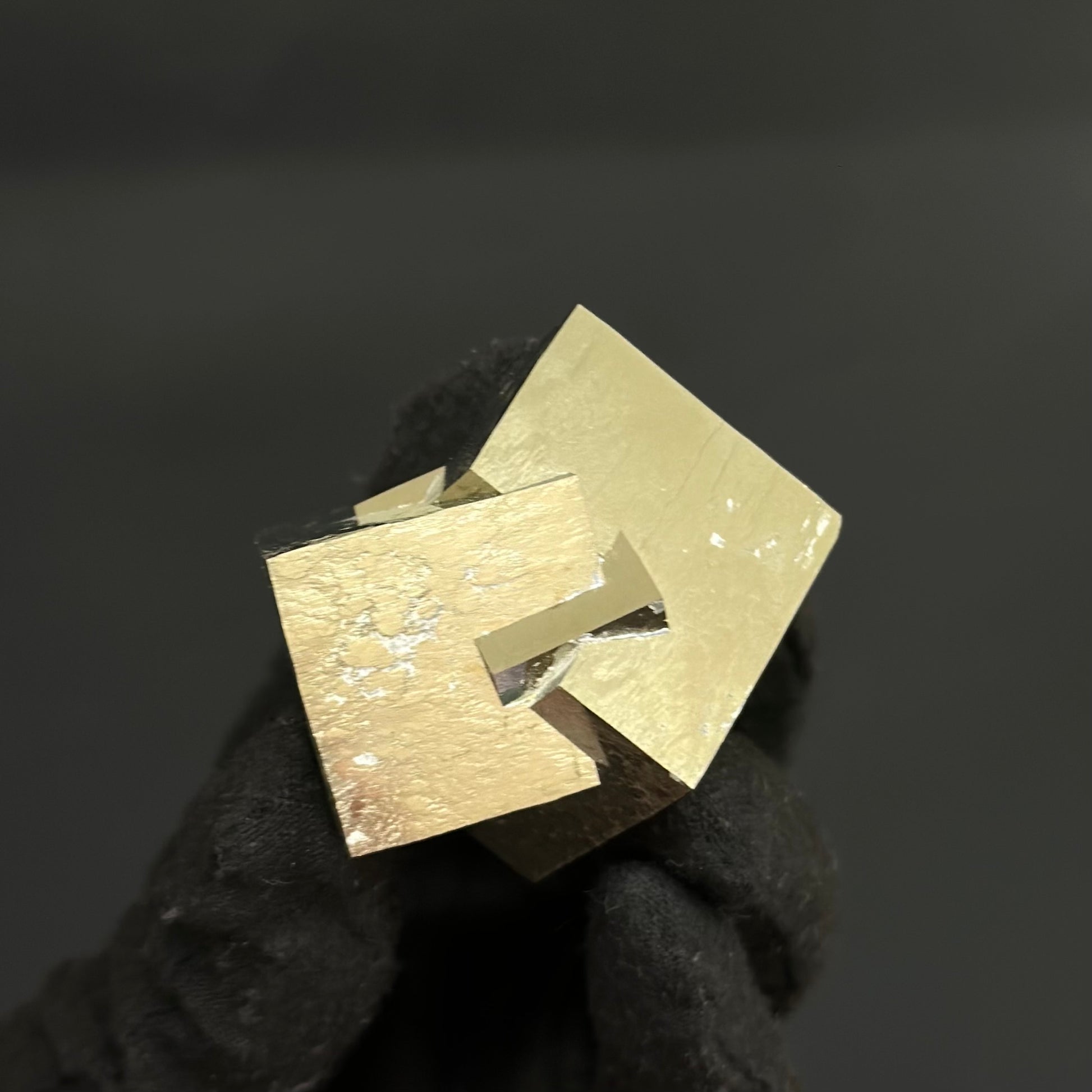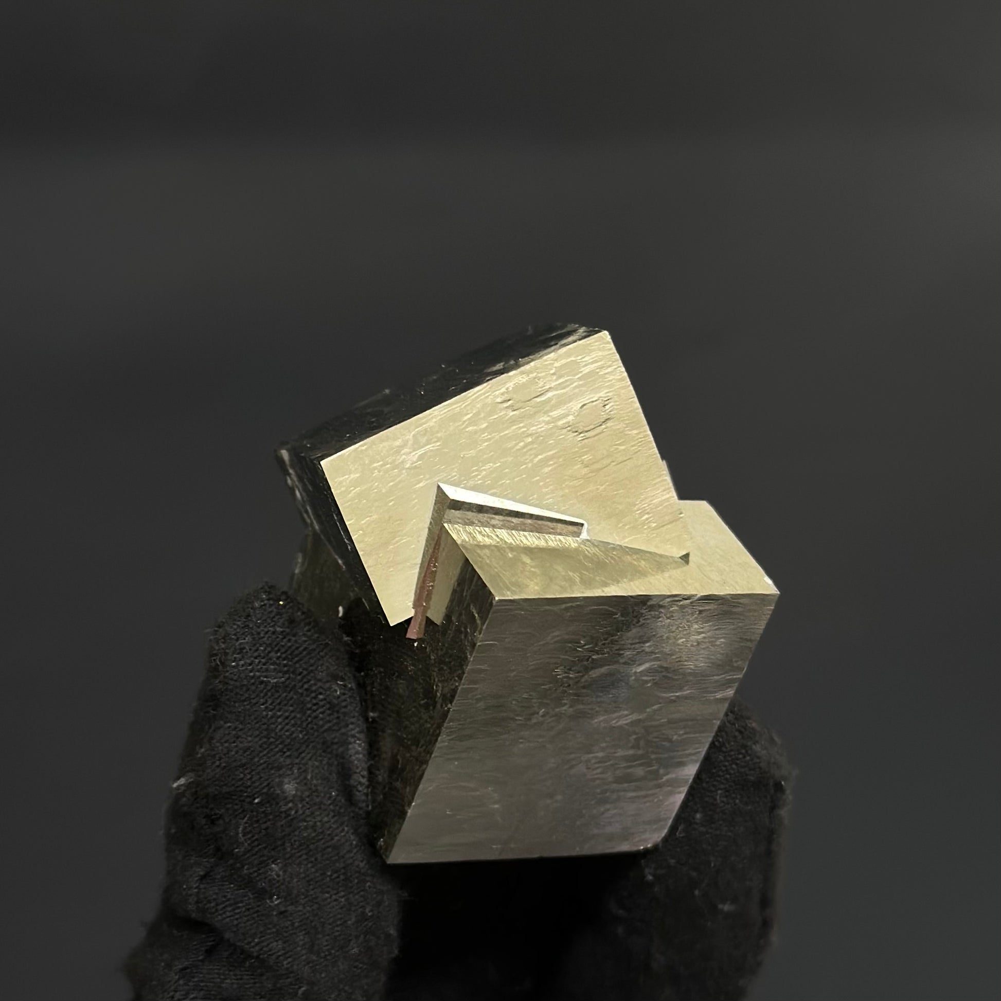 Pyrite specimen features 4 intergrown crystal cubes, naturally connected in a fascinating intertwining pattern.