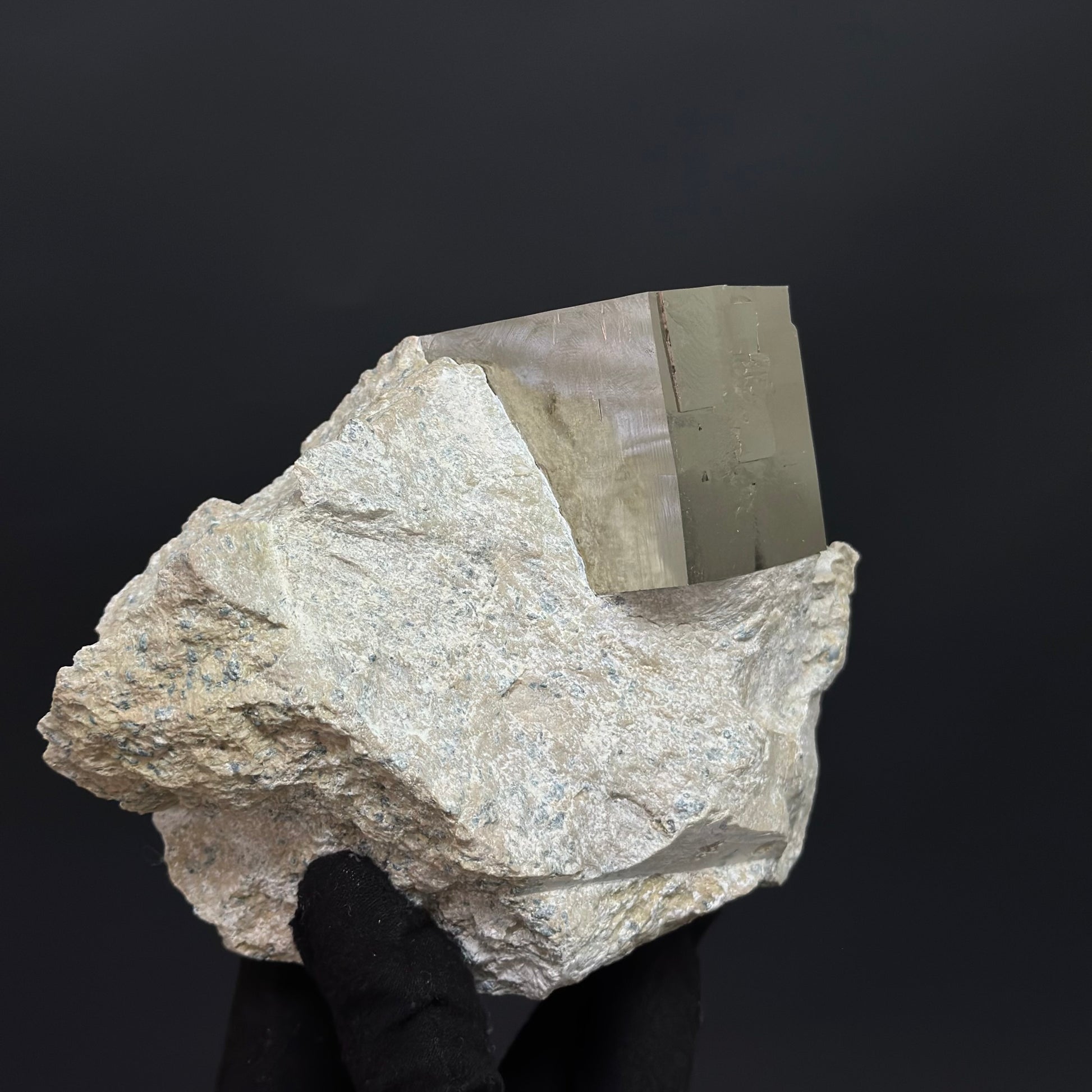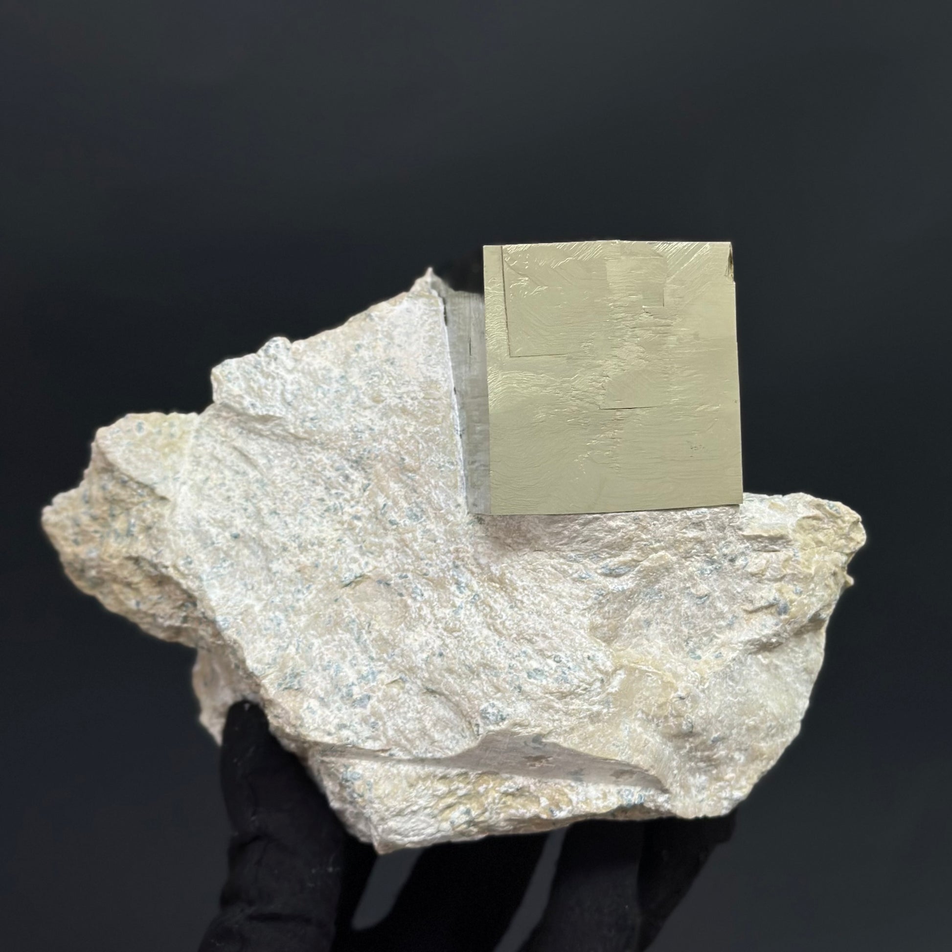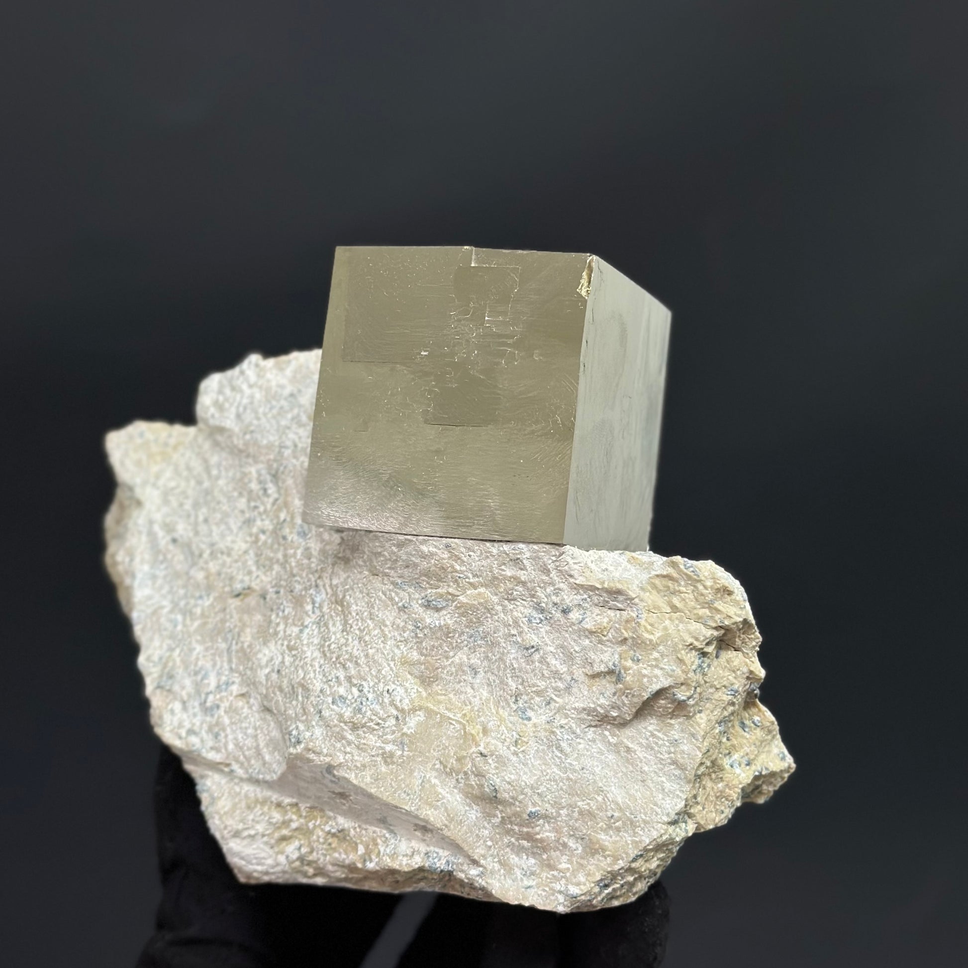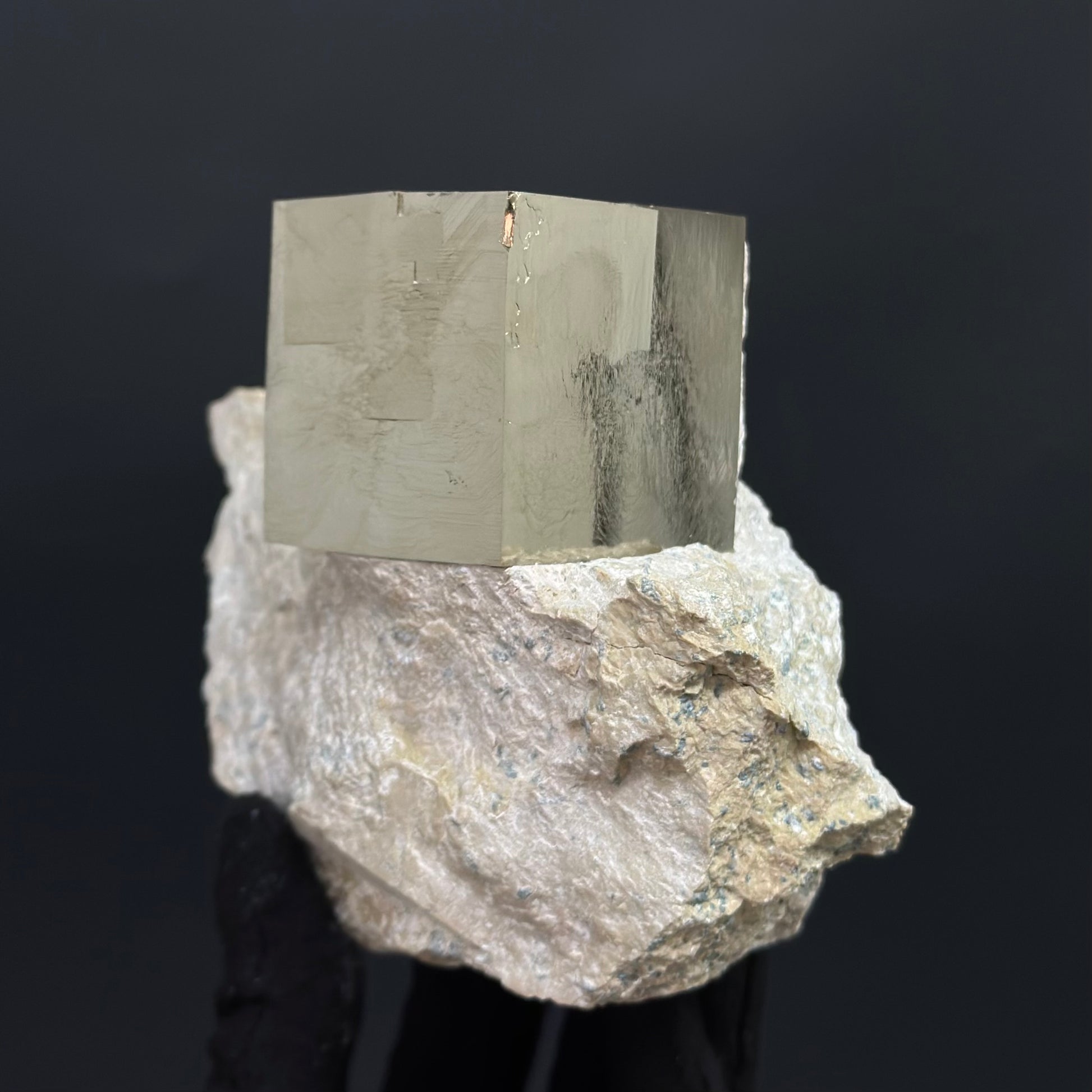 At the corner of the pyrite crystal, there is a small natural contact. Rare size cube.
