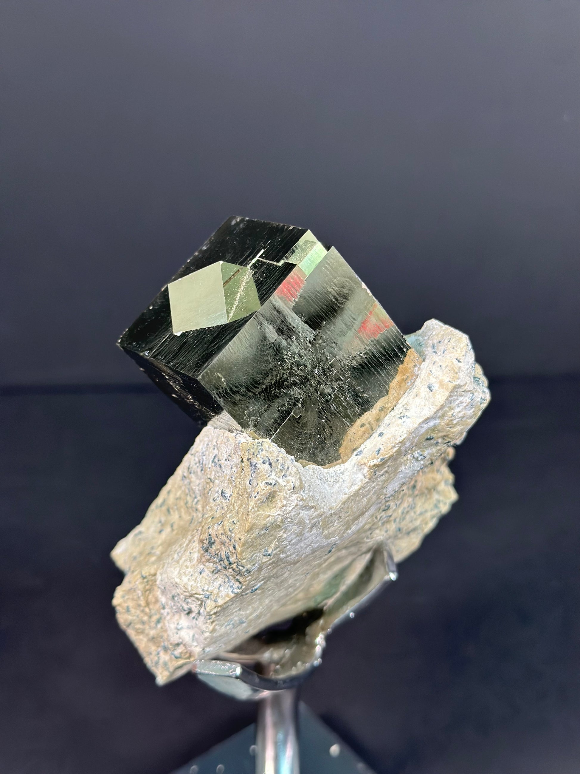 This Specimen has sharp, well- defined terminations where the crystal face are perfect with a metallic mirror luster.