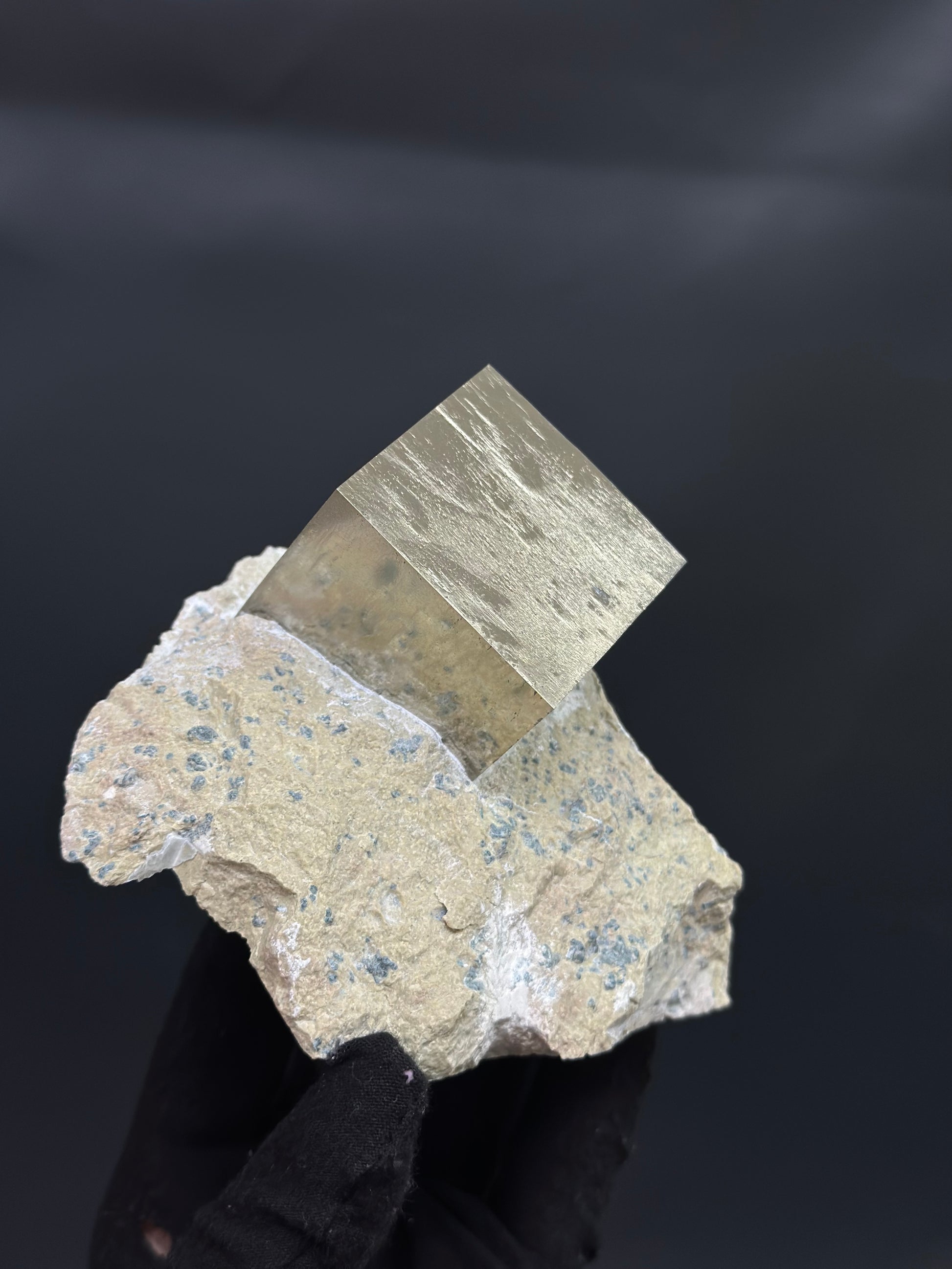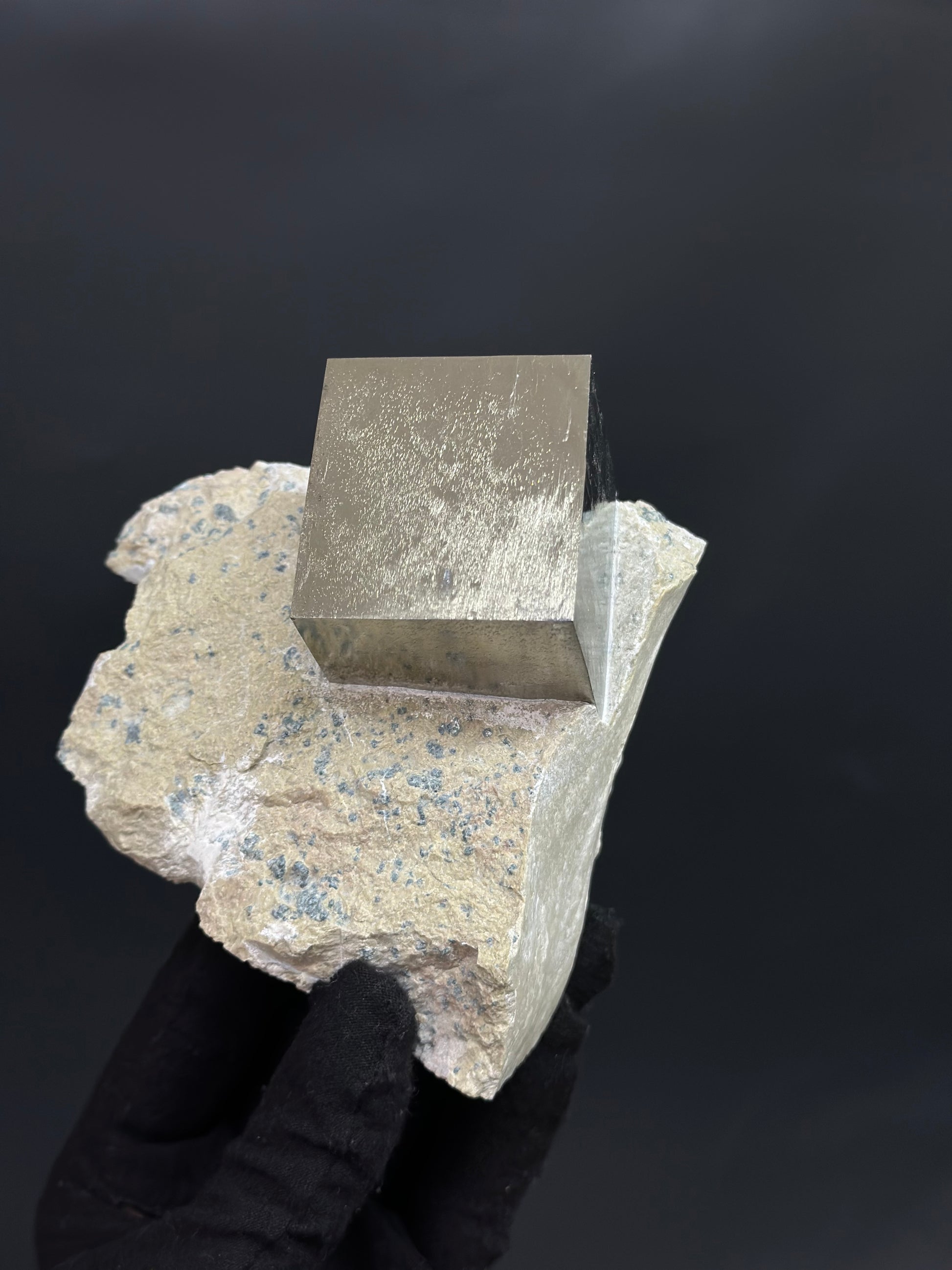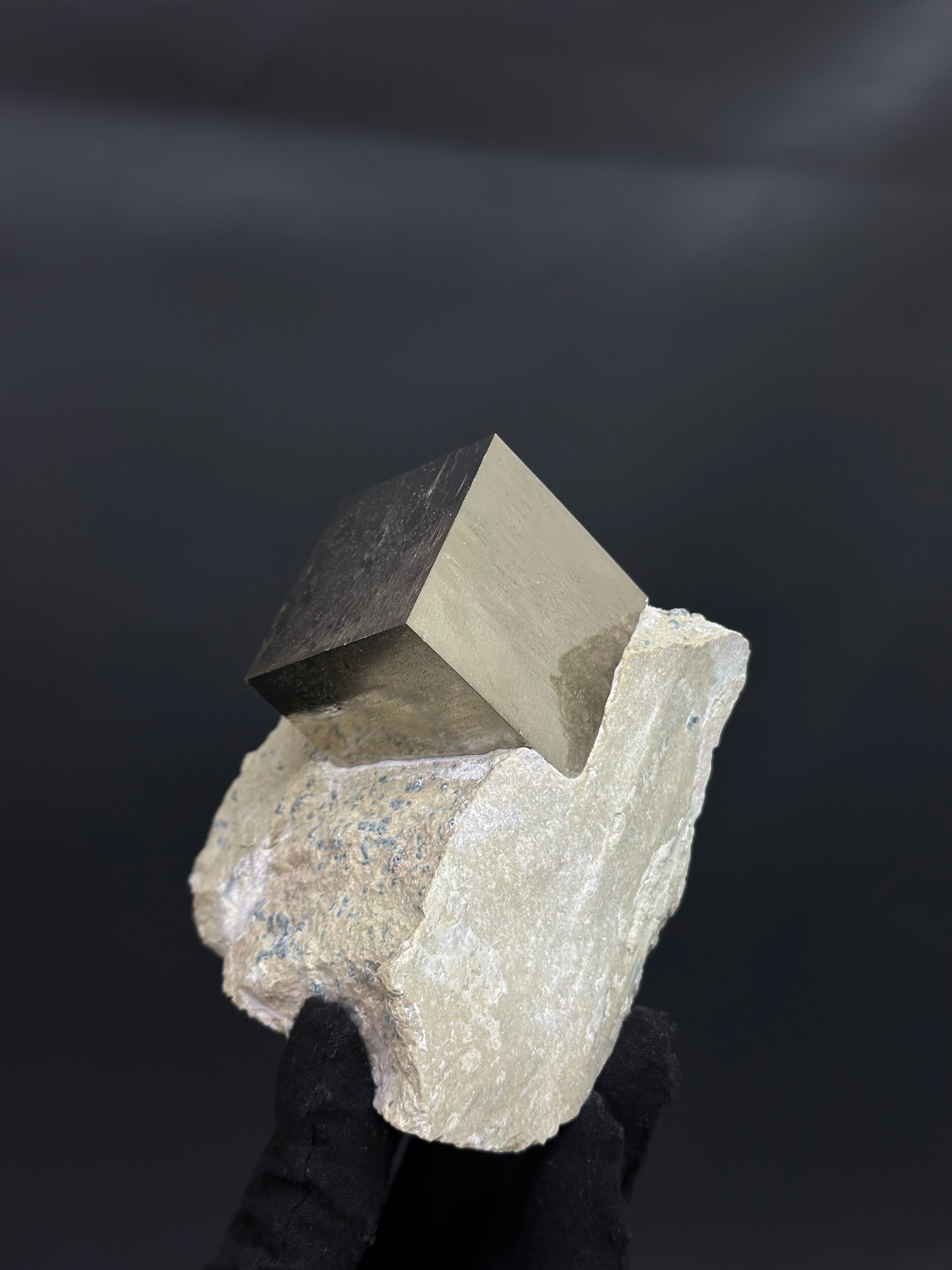 Metallic lustrous Cubic Pyrite Crystals on Matrix (Limestone).