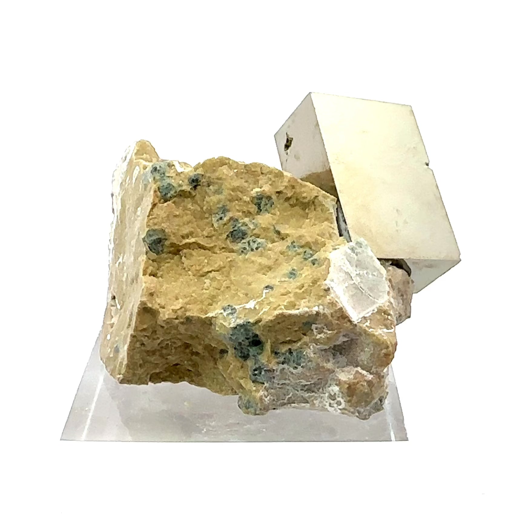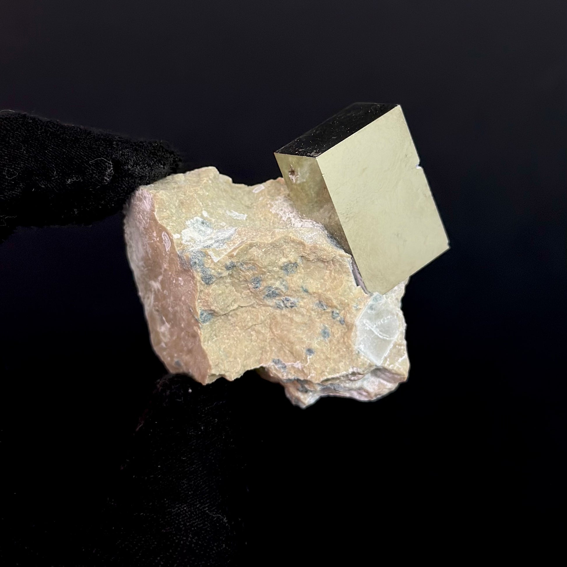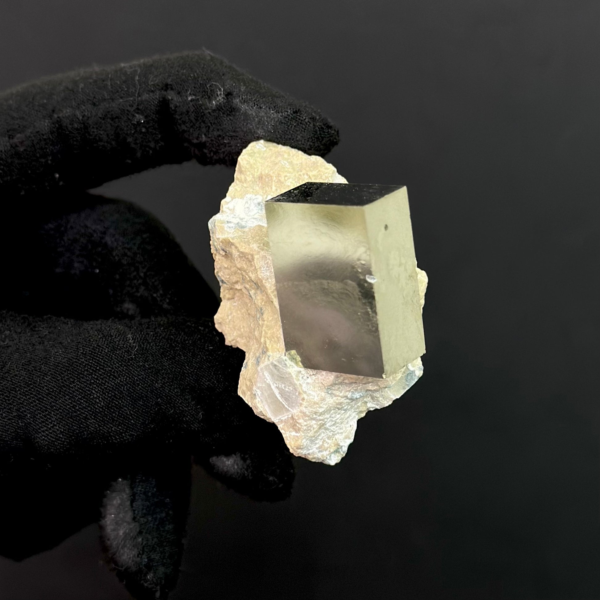 Rectagular Pyrite shapes embedded on Matrix are rare finds in the mine. This specimen features a mirror-like shine and a flat surface, making it a special addition to any collection.