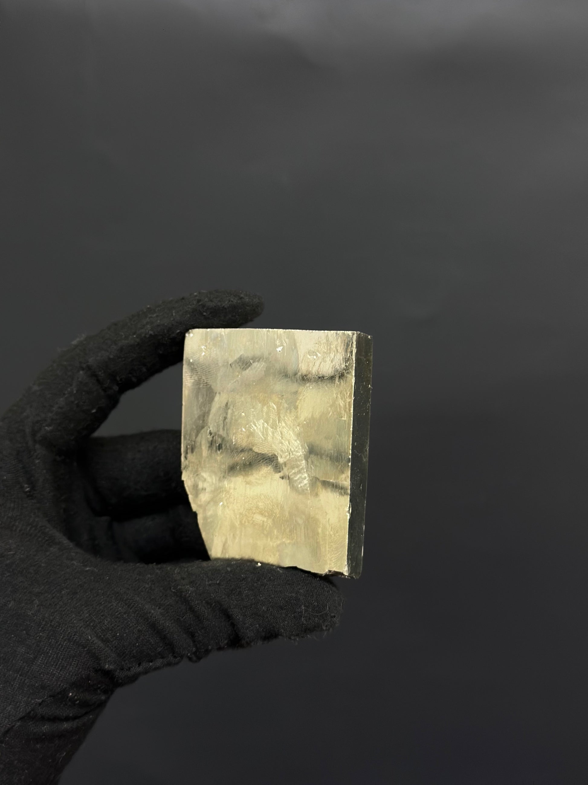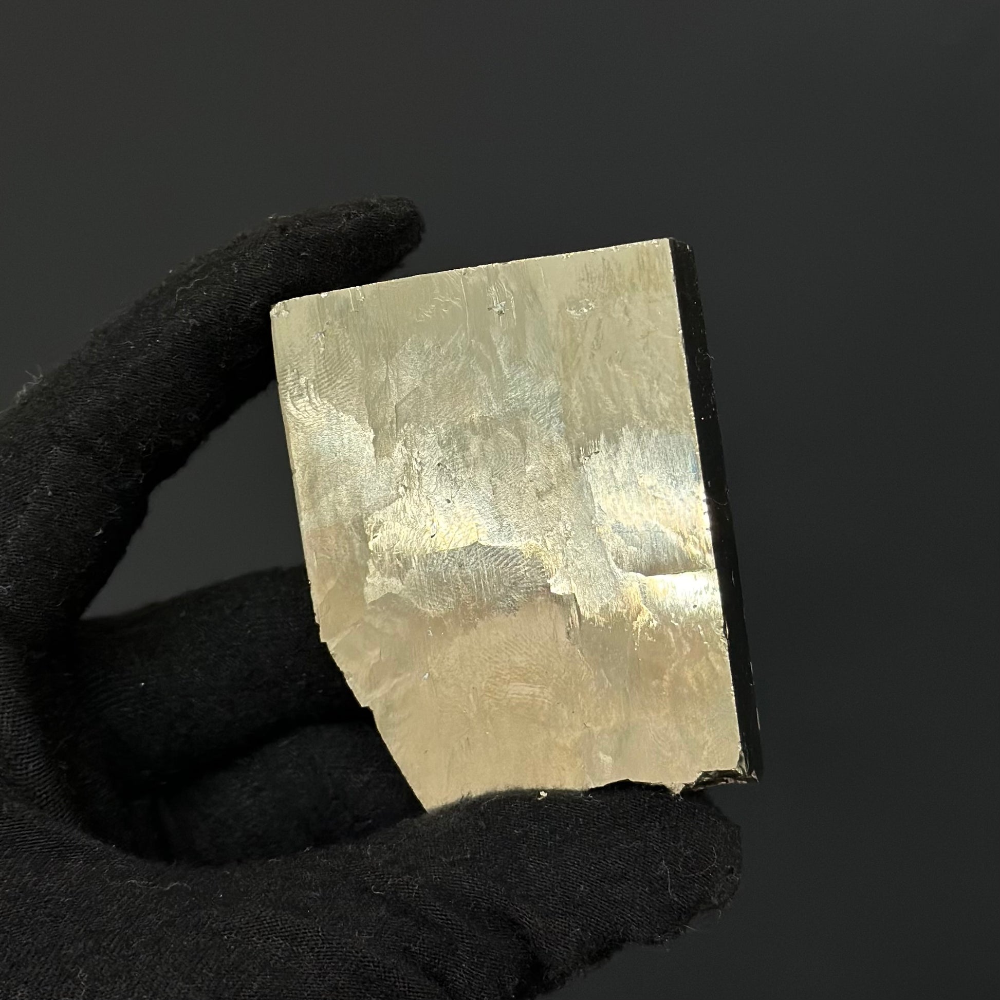 Rectangular Pyrite shapes are rare finds in the mine. Each rectangular Pyrite is 1 of 1, making them all unique in different ways. This specimen features a smooth natural gold surface with a unique flat shape making it a special edition to any collection.