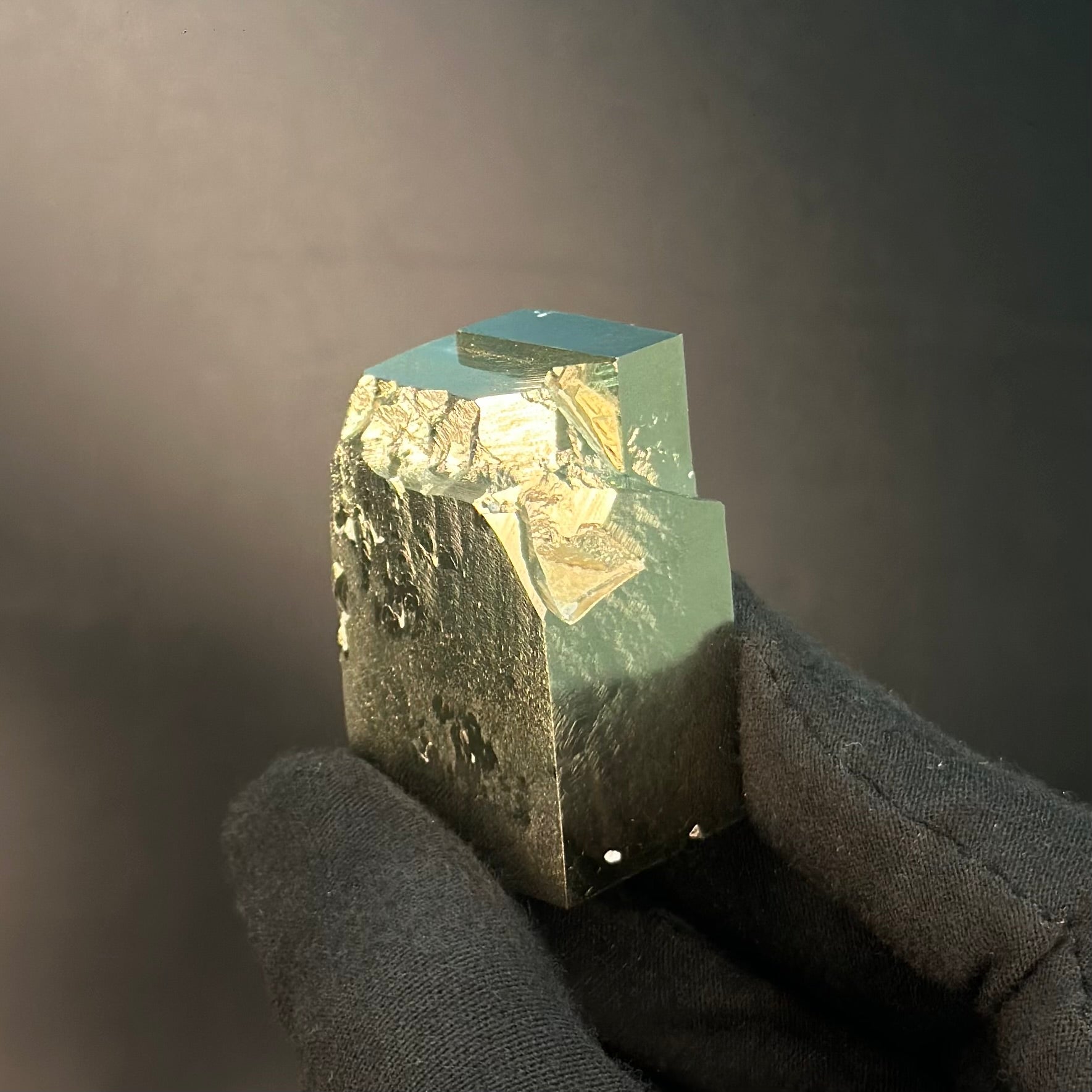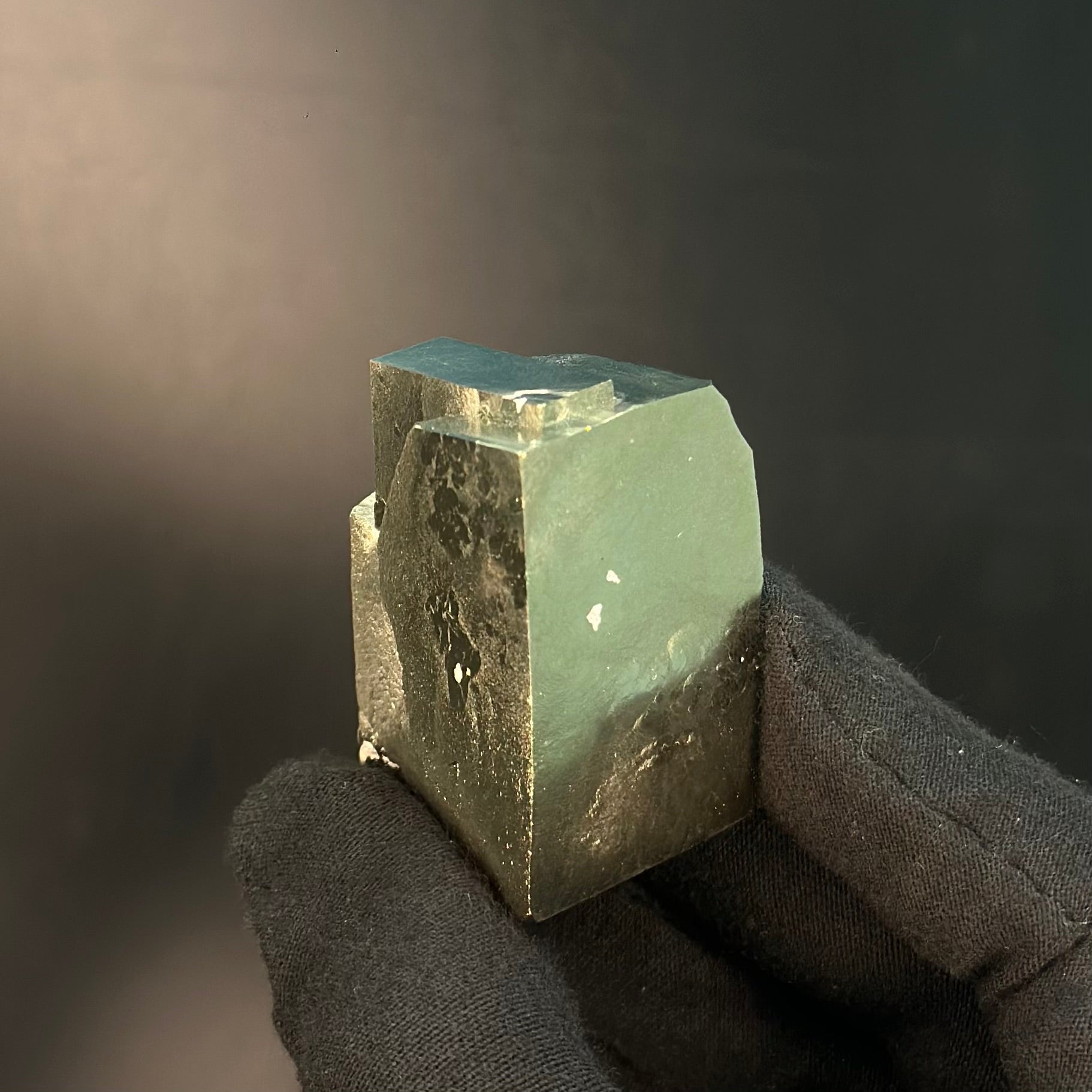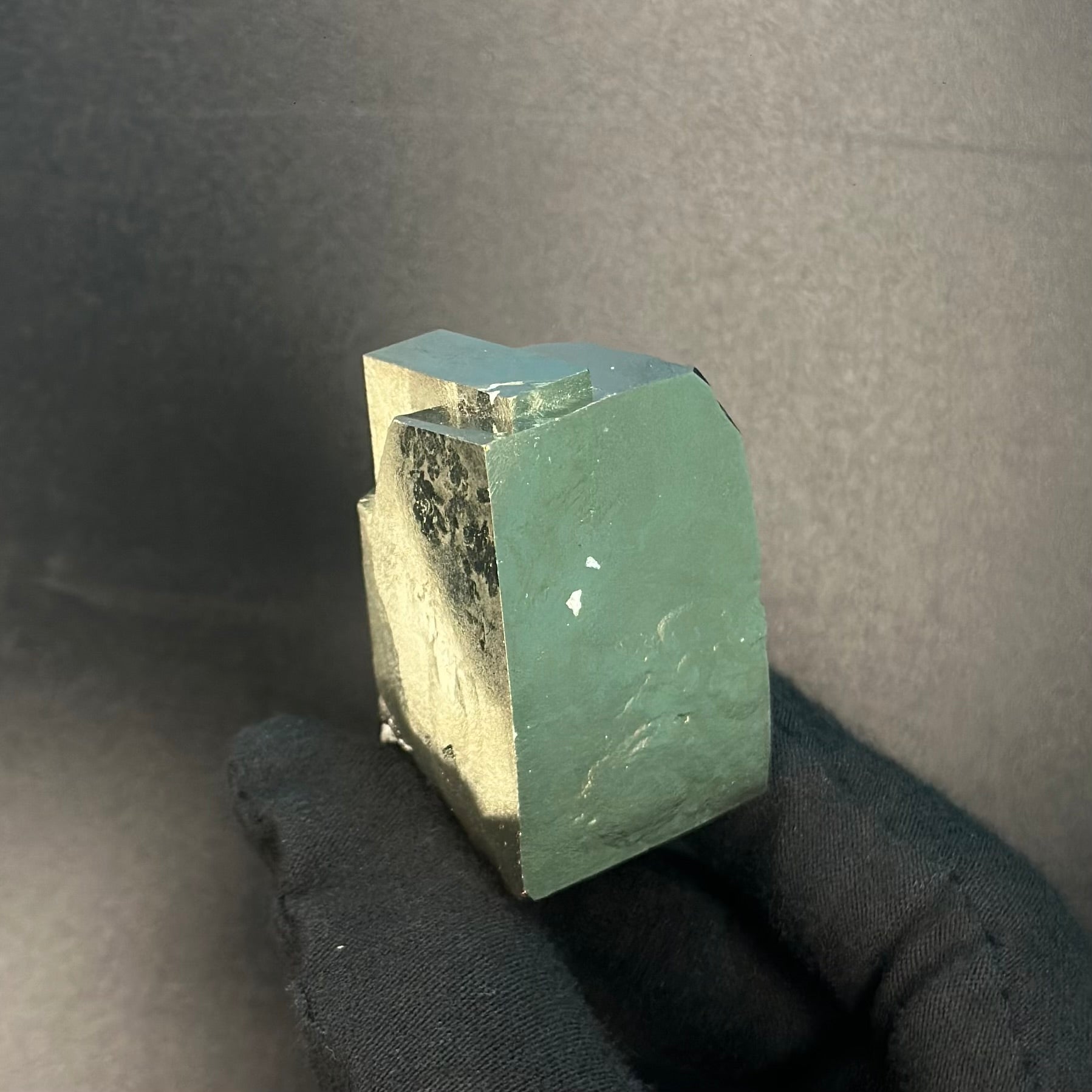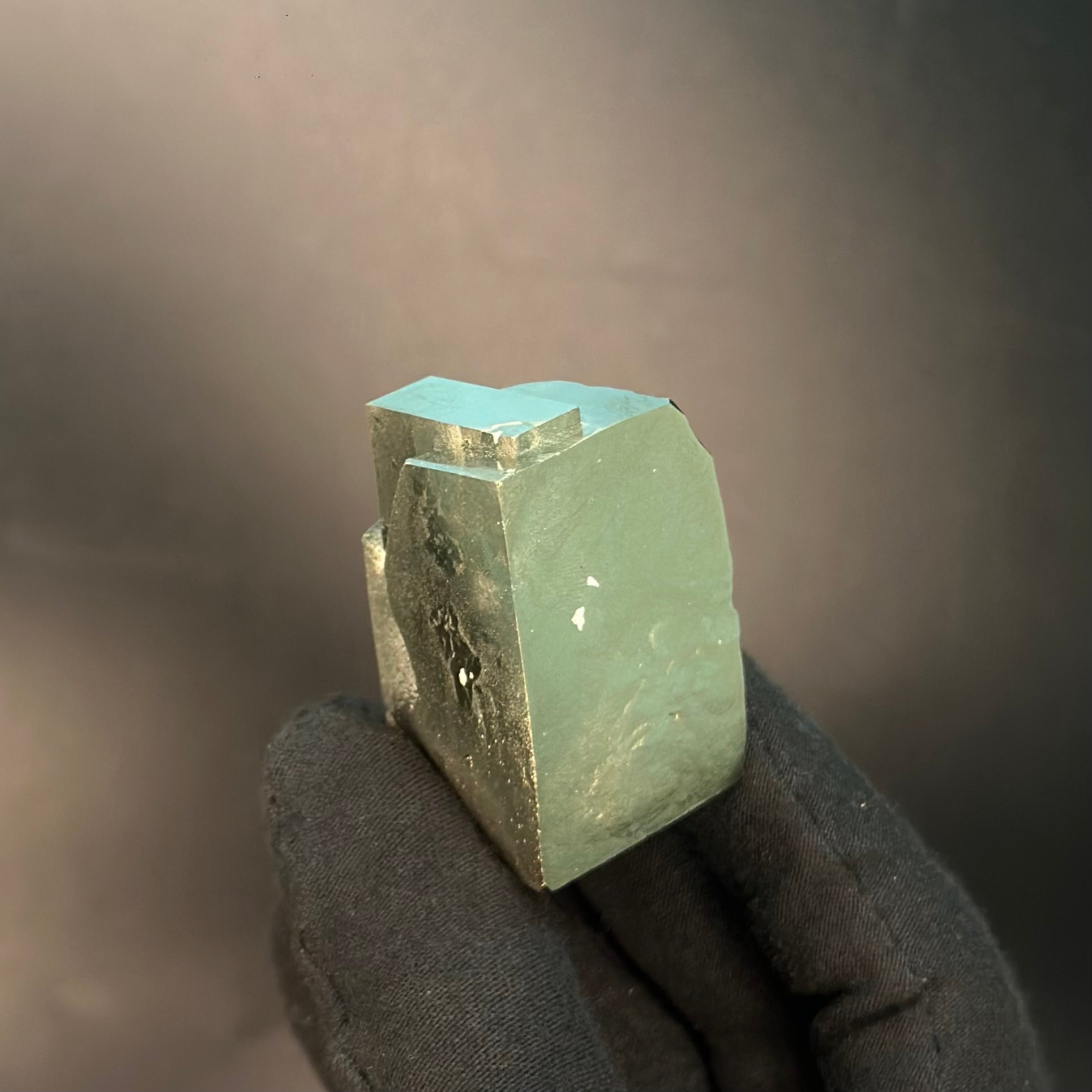 This high-quality piece displays a single rectangular pyrite with signs of natural contact which occur during the pyrite's formation. it boasts a beautiful and bold gold color along with a very unique shape making it a treasure for any collector and would make an incredible, eye-catching gift.