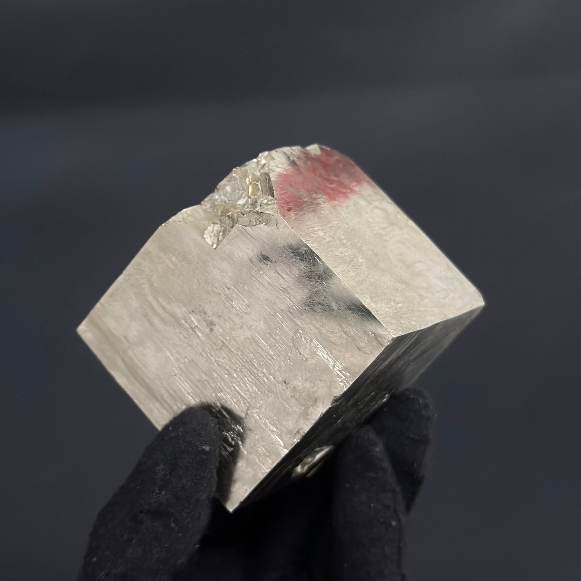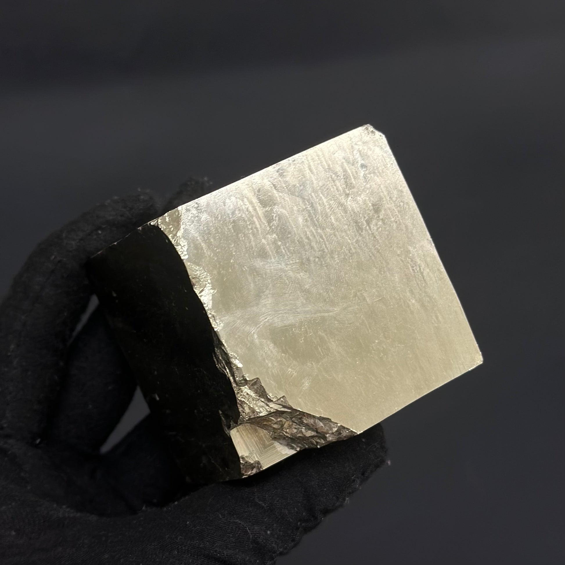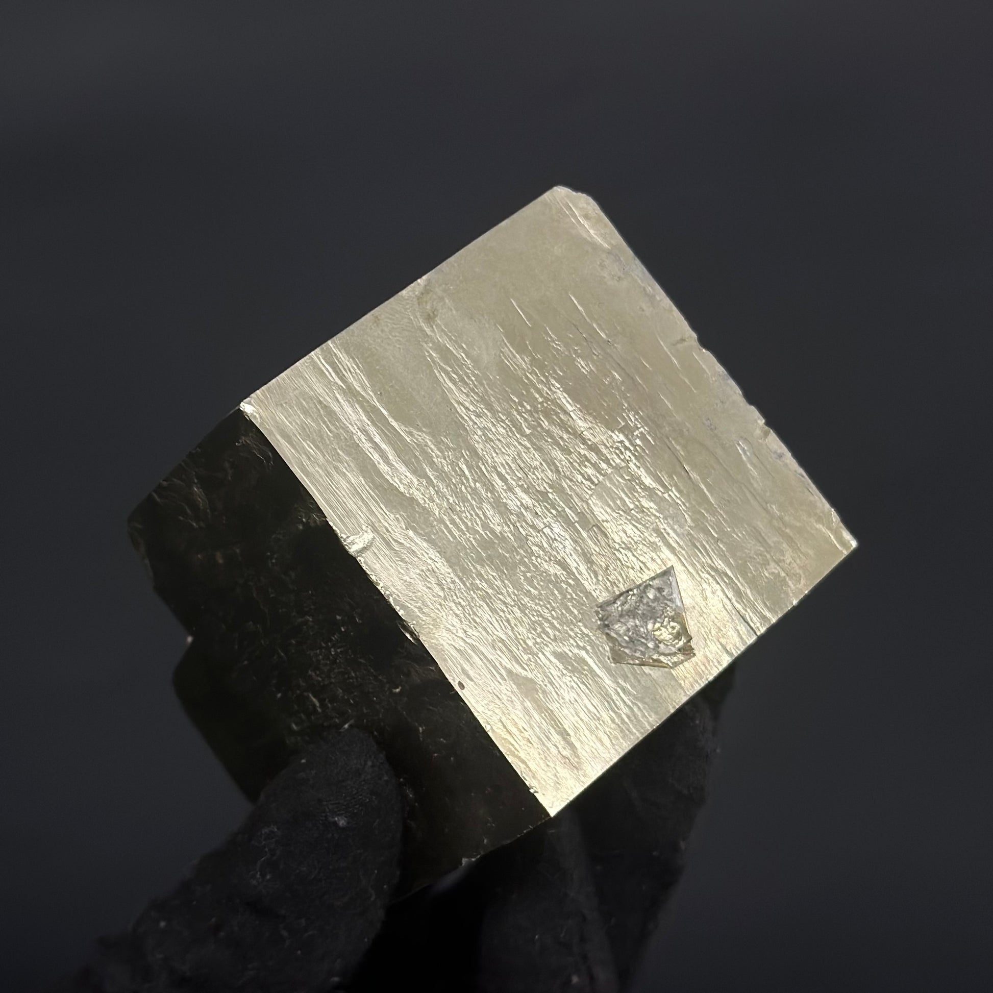 A high-quality sample of a single cube crystal from Pyrite Cubes, featuring well-defined terminations and perfect crystal faces with a metallic mirror luster.